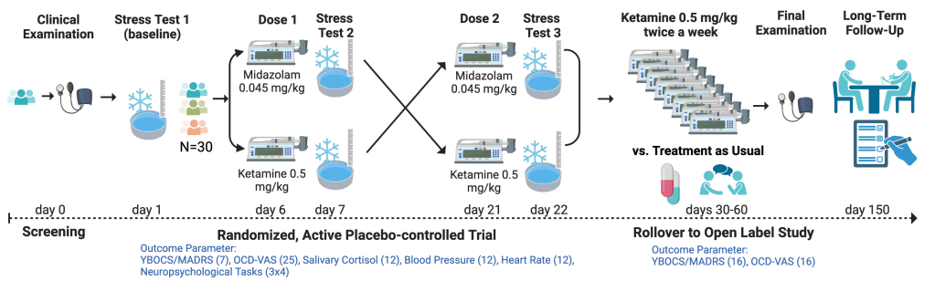 Half of patients suffering from OCD do not have sufficient alleviation through first line treatments such as psychotherapy or selective serotonin reuptake inhibitors. Furthermore, current treatment options often take weeks or months to work, leaving many patients struggling. This study investigates the therapeutic potential of ketamine, a rapidly acting medication, to alleviate OCD and stress symptoms.